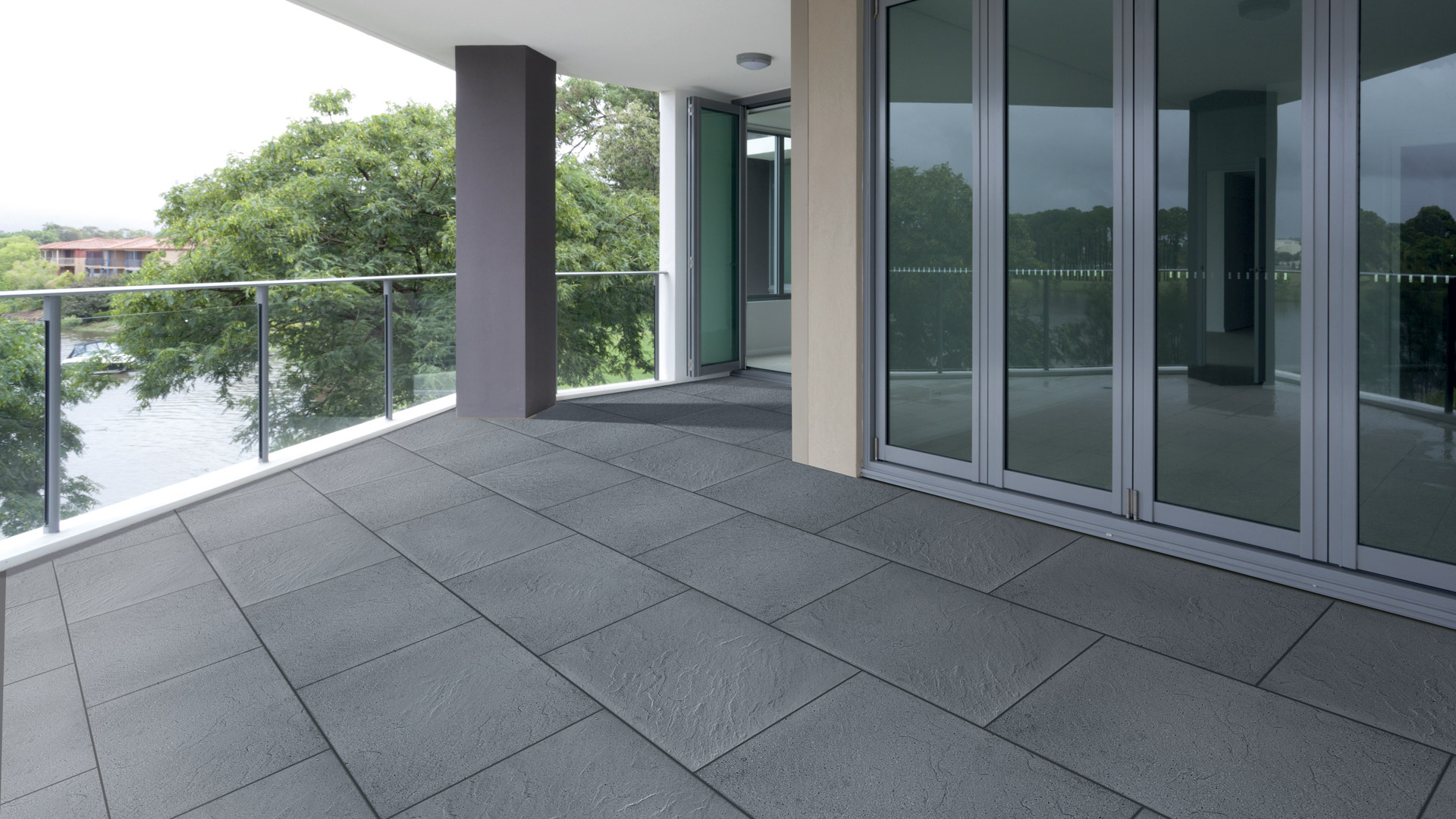 Surface with a slight split stone effect, perfect for verandas and walkways, the color range allows inte- ressing color play, resistant to dirt.