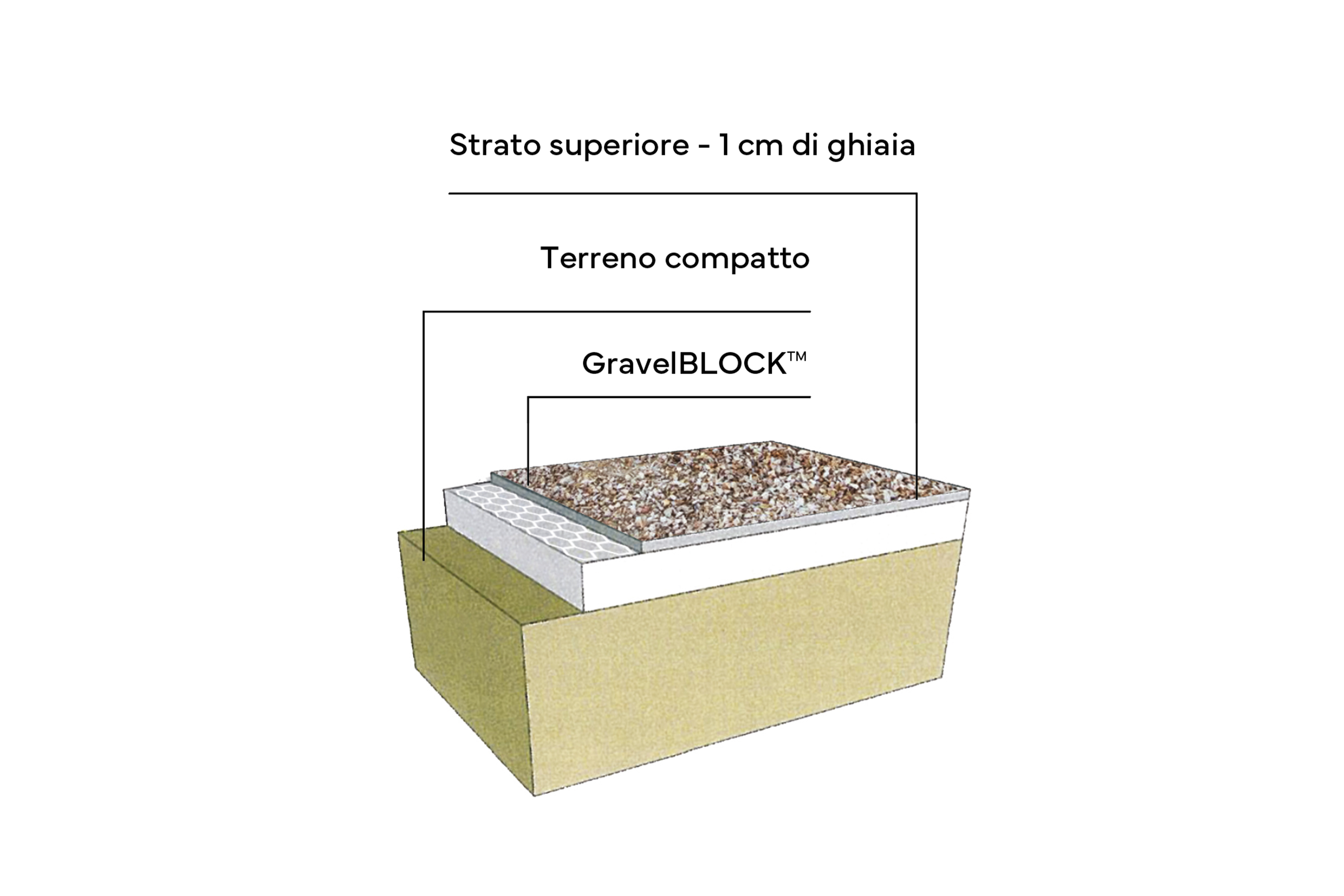 • Stabilizza le superfici in ciottoli e granulati rendendole carrabili.