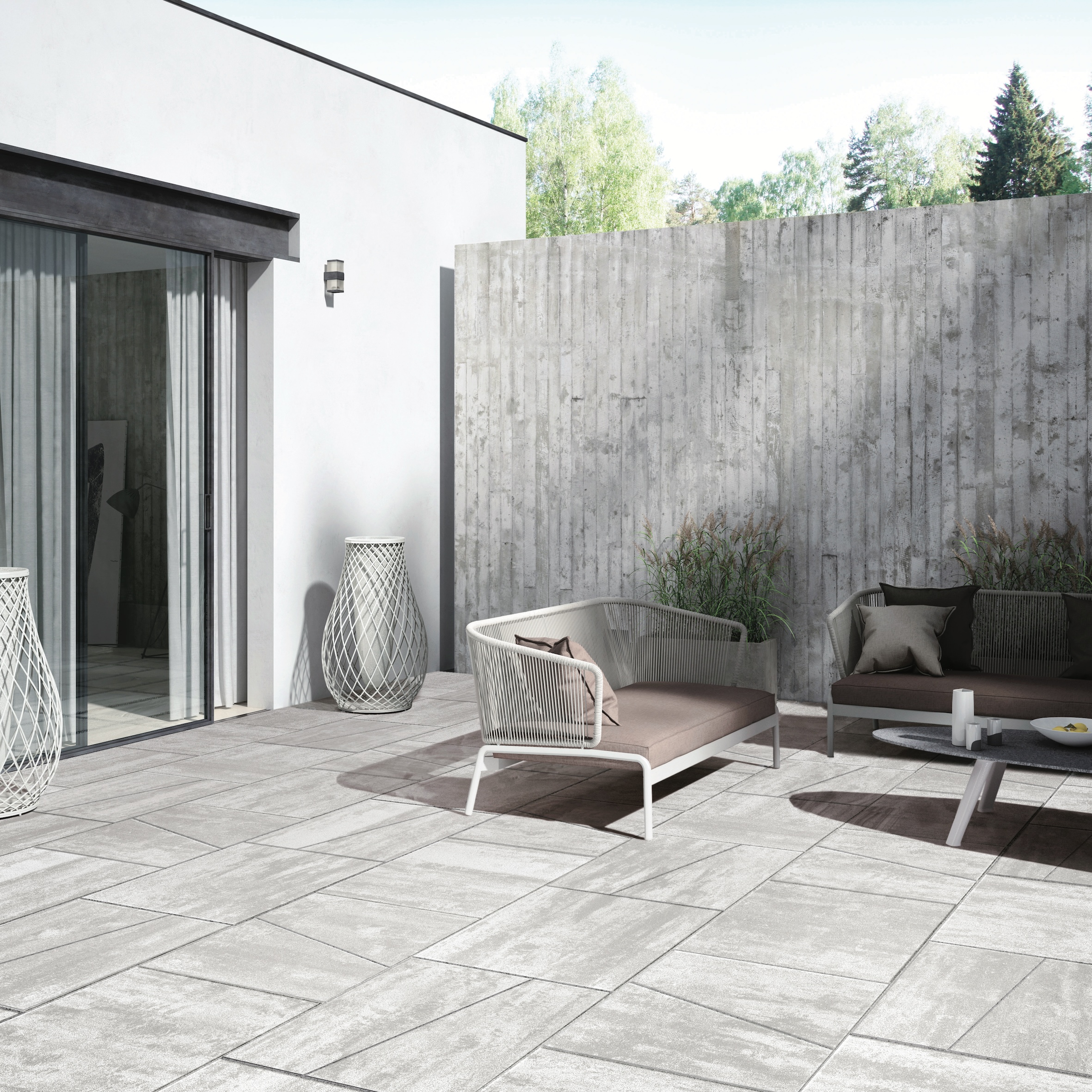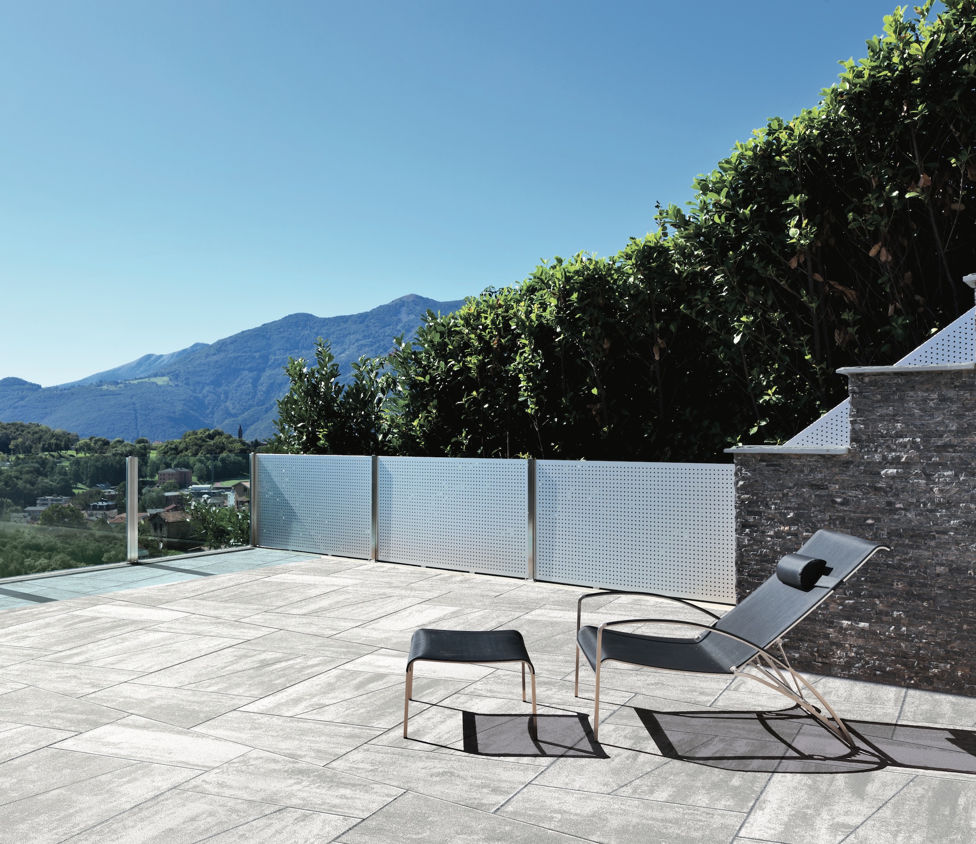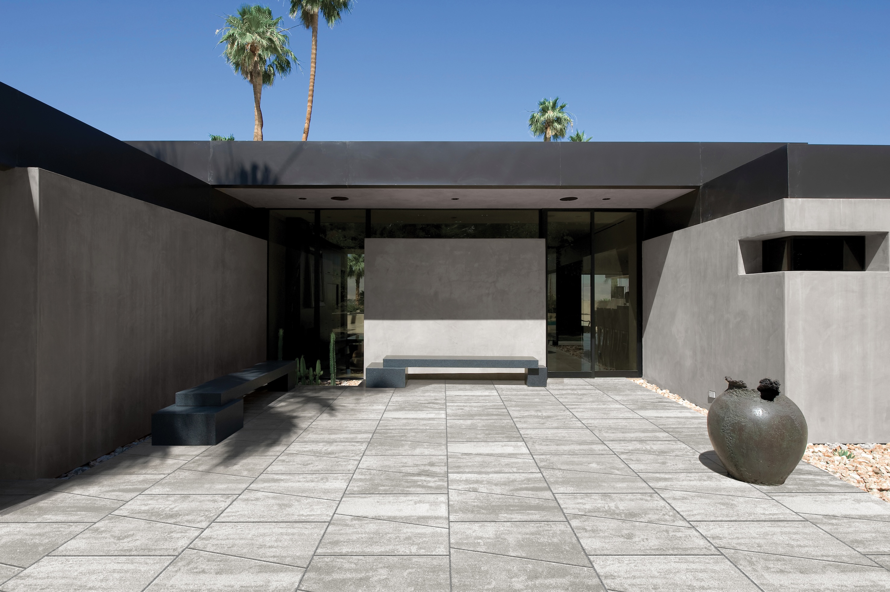 Lastra trapezoidale fiammata in pietra ricostruita. Un singolo modulo brevettato che permette varie modalità di abbinamento e di resa del disegno della pavimentazione. D-Vision è la lastra fiammata di spessore 4cm e superficie liscia che grazie al suo Design Unico permette fino a 7 diversi schemi di posa in grado di creare uno spazio esterno moderno e accattivante.