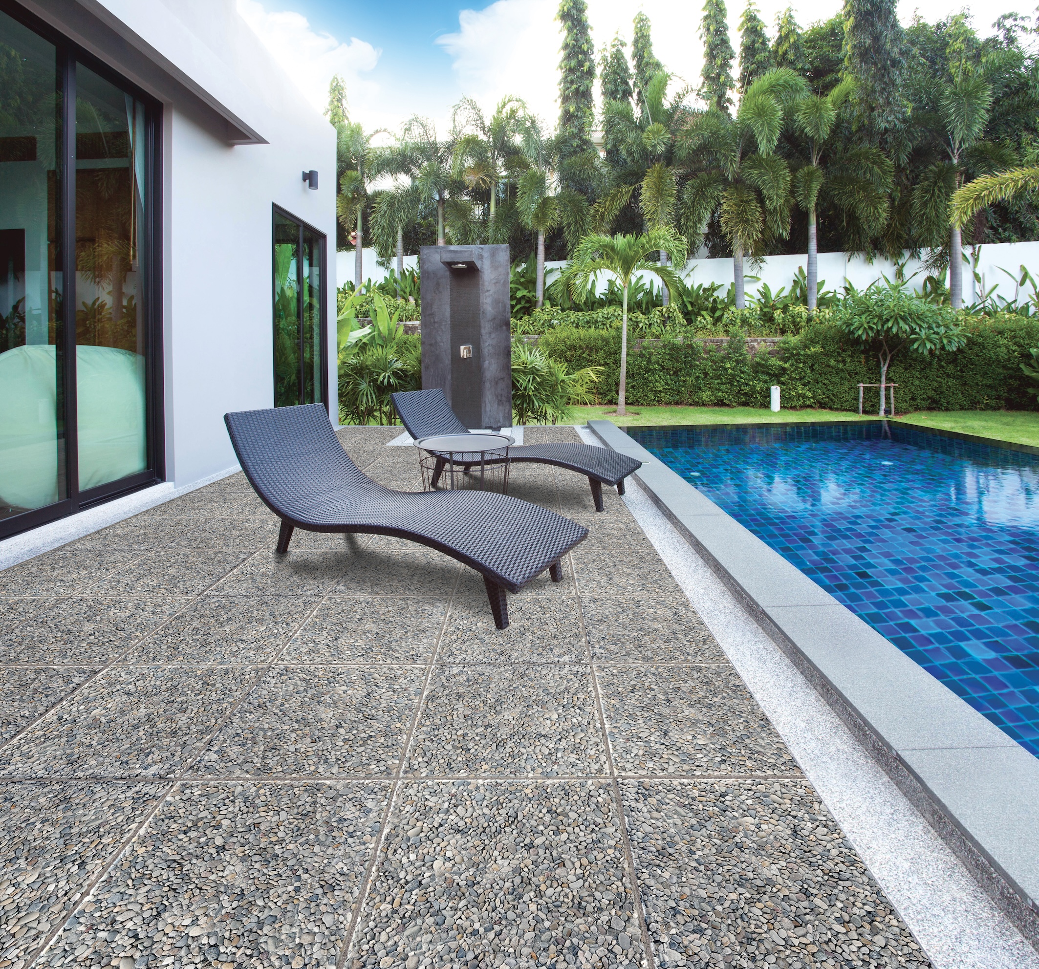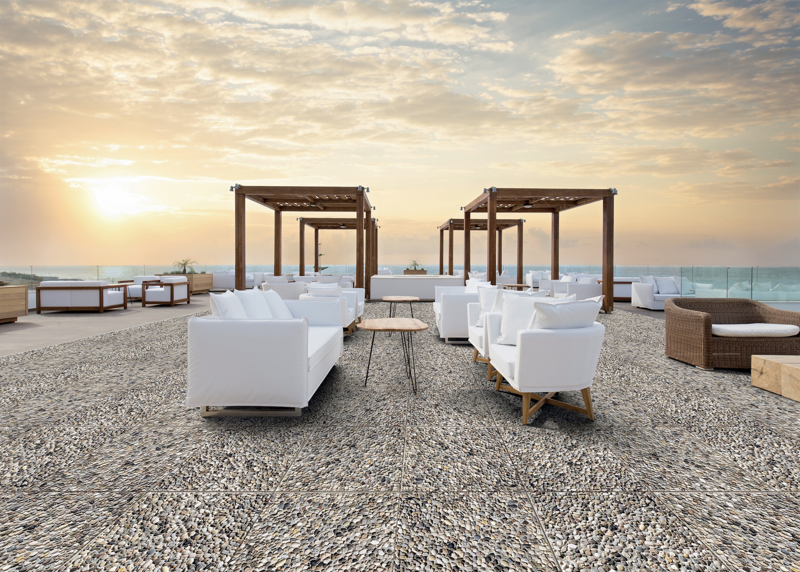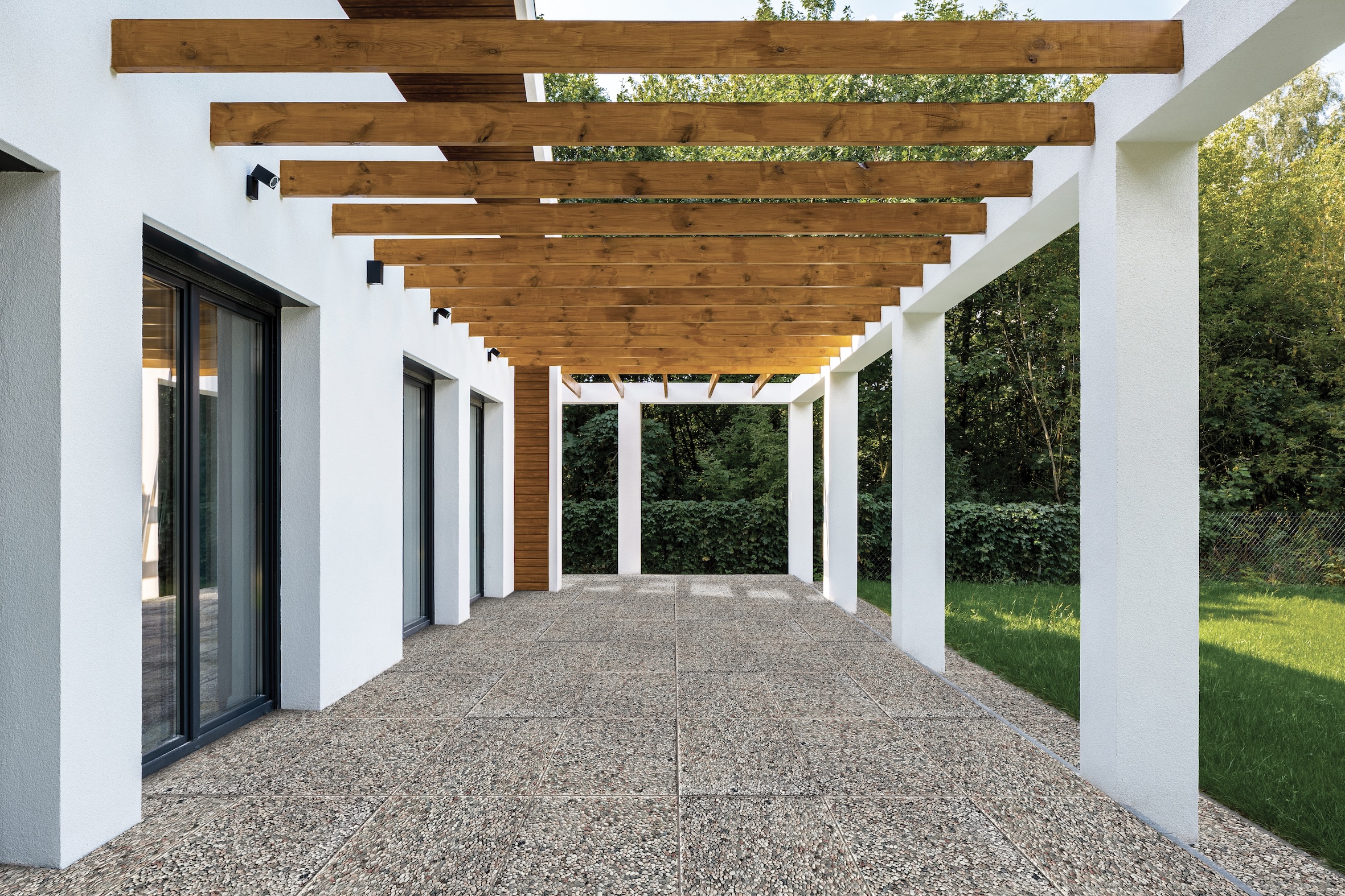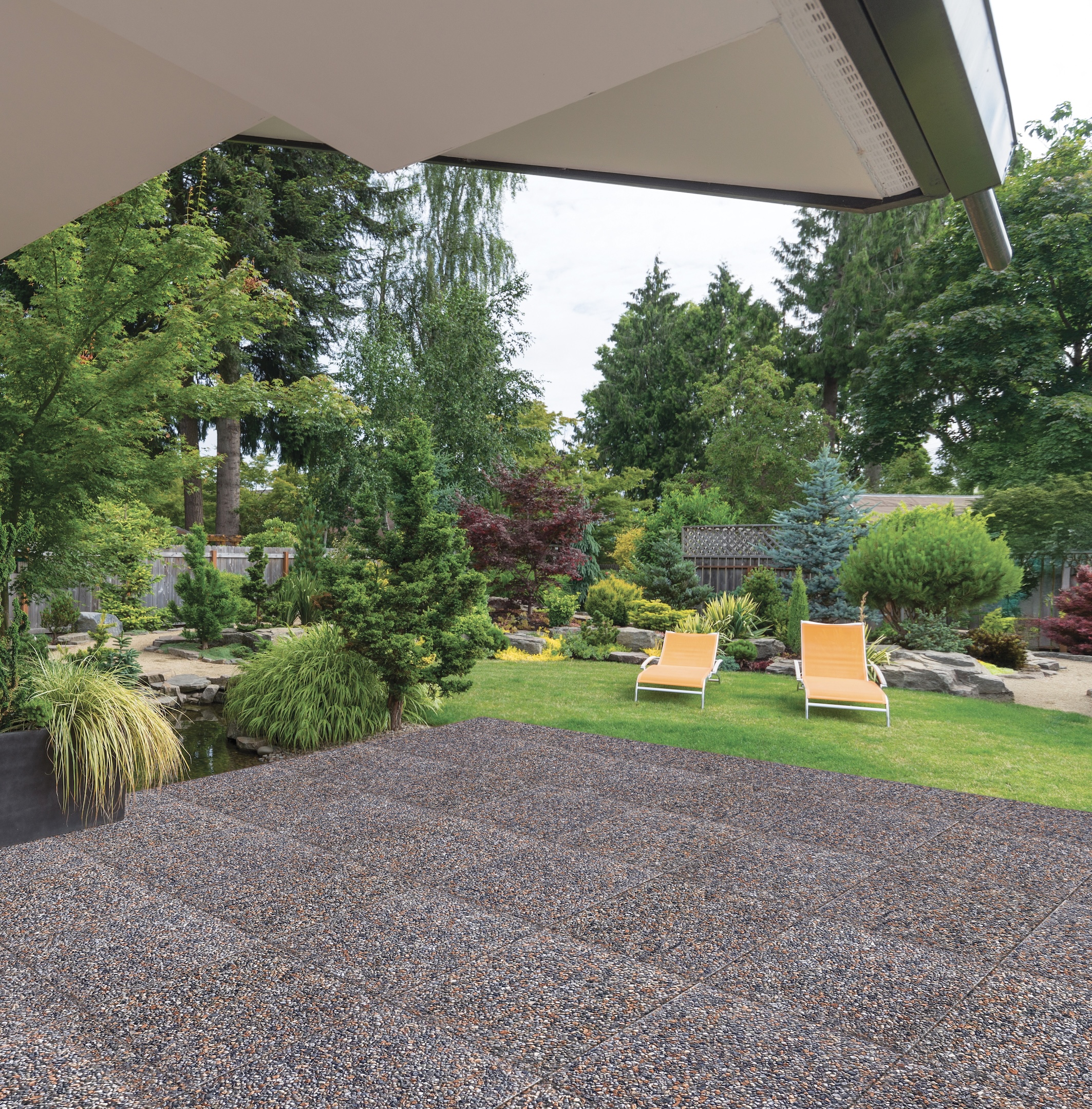 Superficie ruvida, materica; perfetta per giardini e cortili; dona uno stile rustico di forte impatto visivo; resistente ad abrasione gelo e scivolamento.