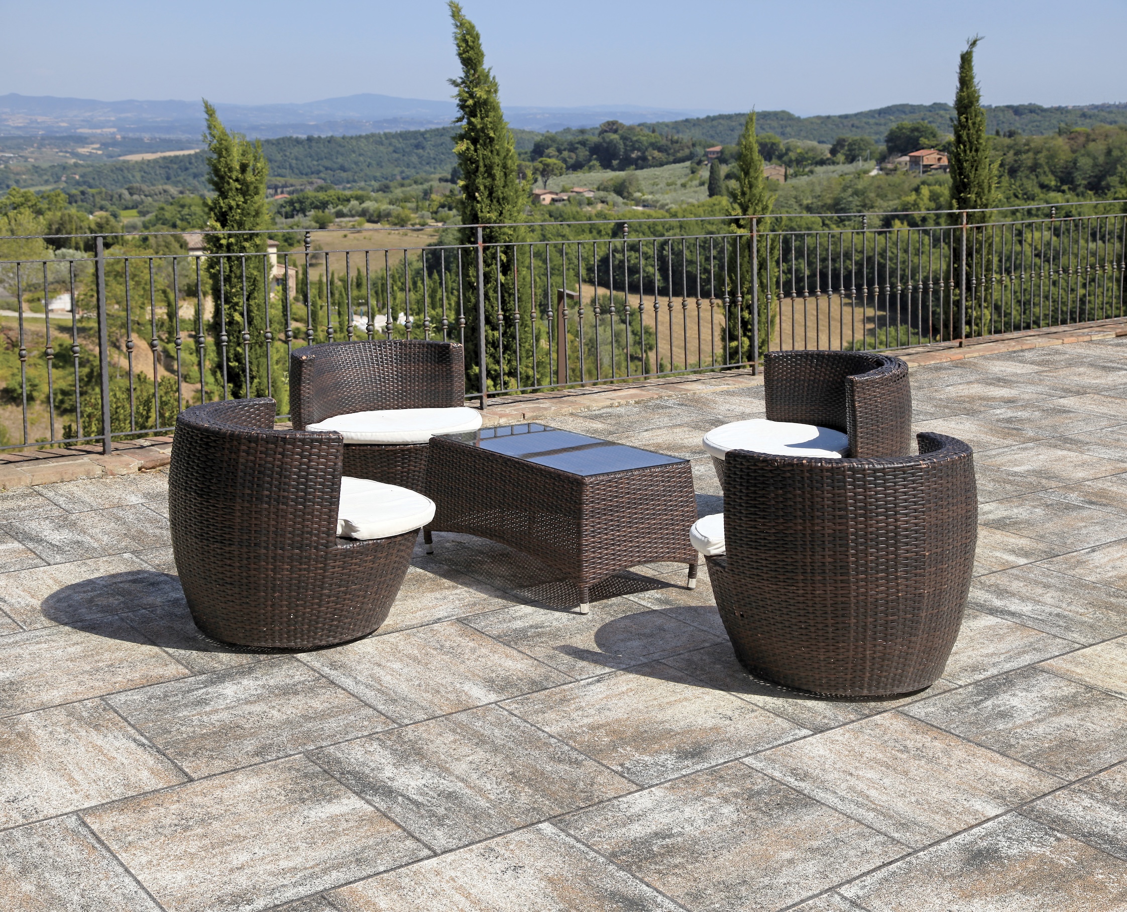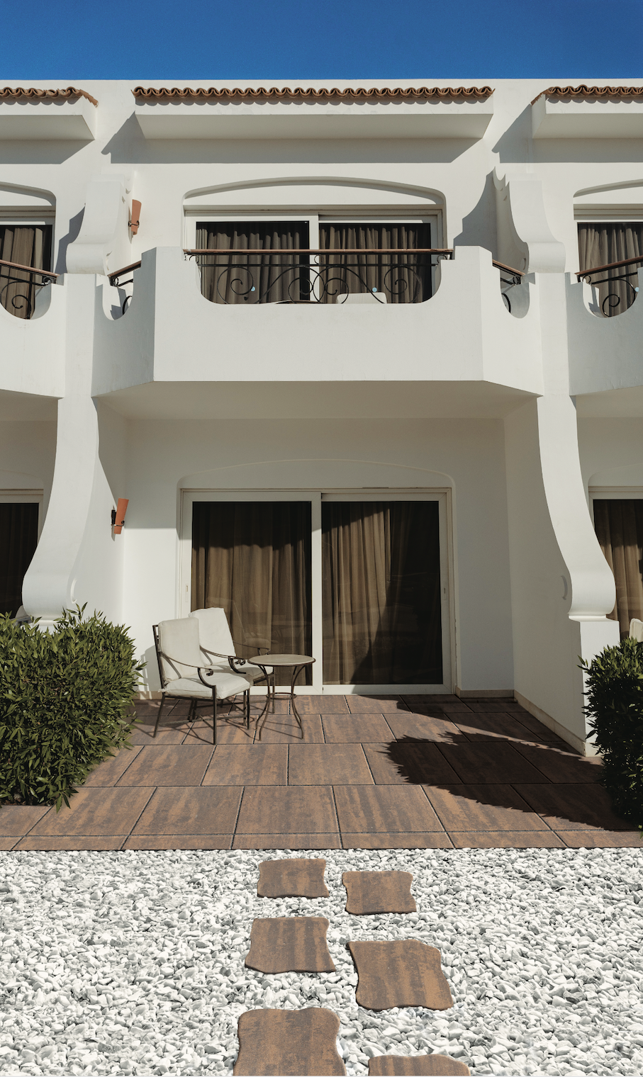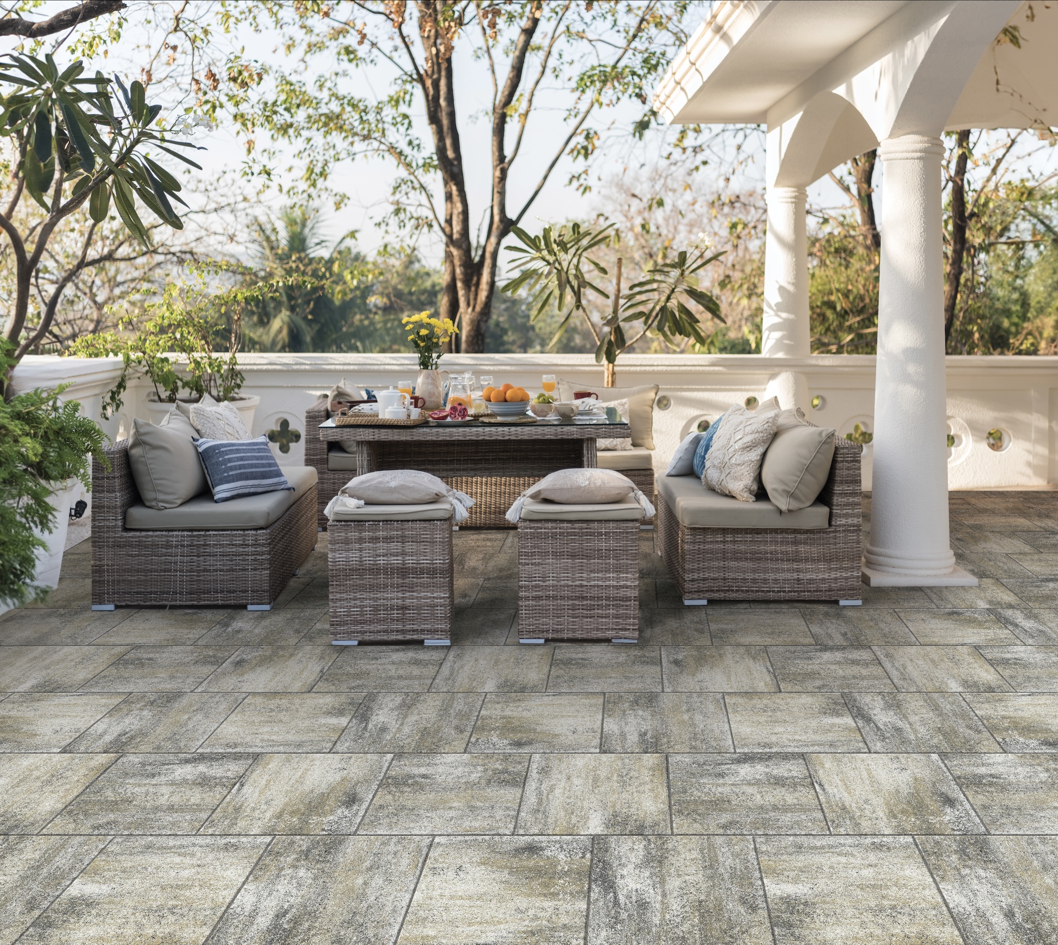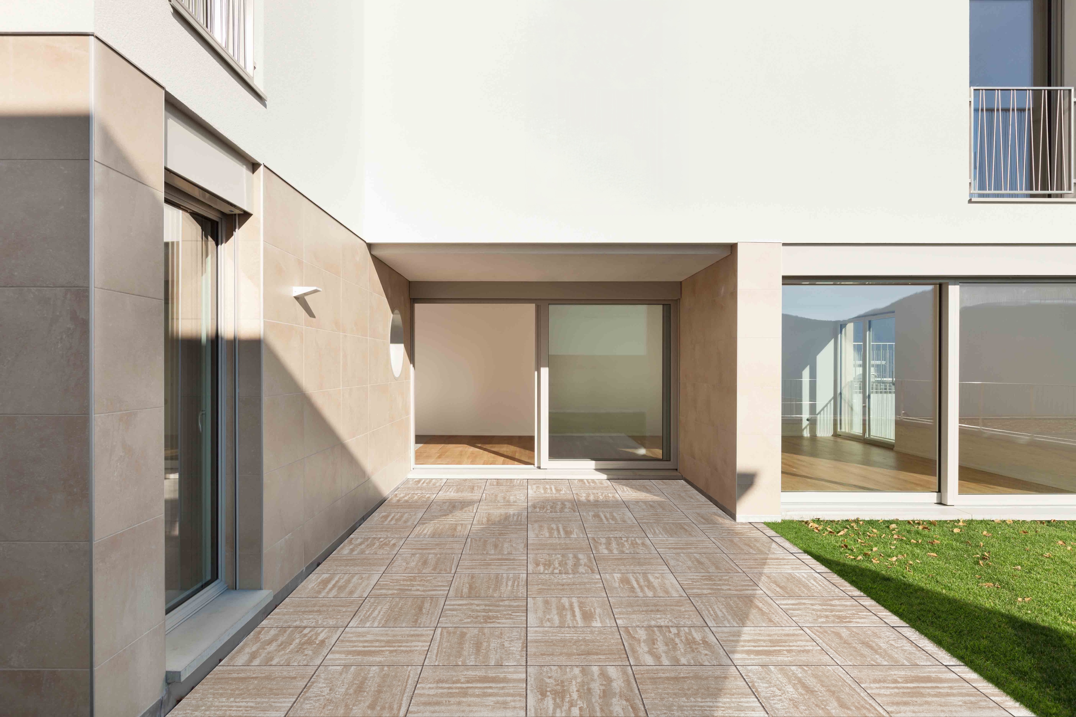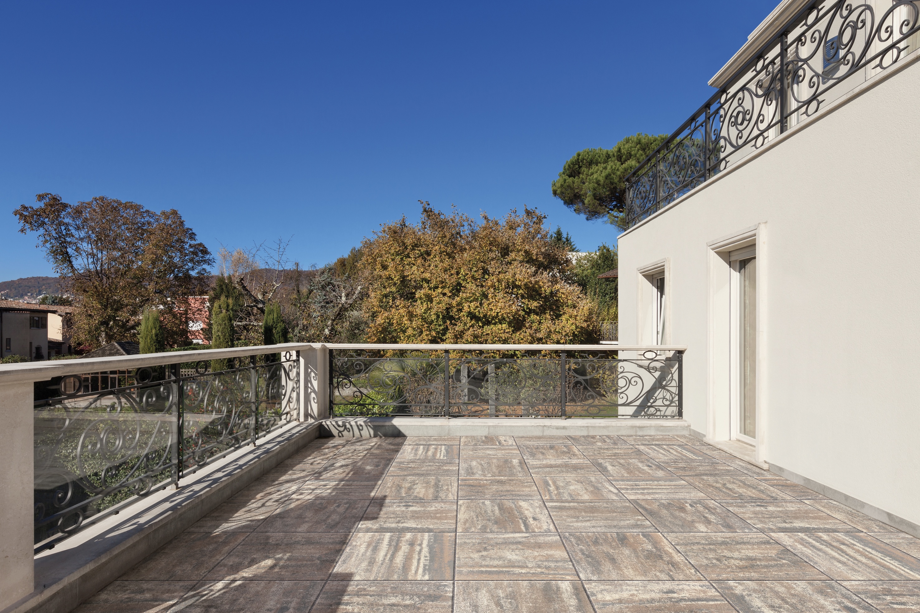 Lastra fiammata in pietra ricostruita. Il grande formato quadrato riesce, posato sia allineato che a correre, a ridefinire gli spazi perfezionandoli. Dona uno stile moderno e ricercato. Resistente ad abrasione, antigelo e scivolamento.