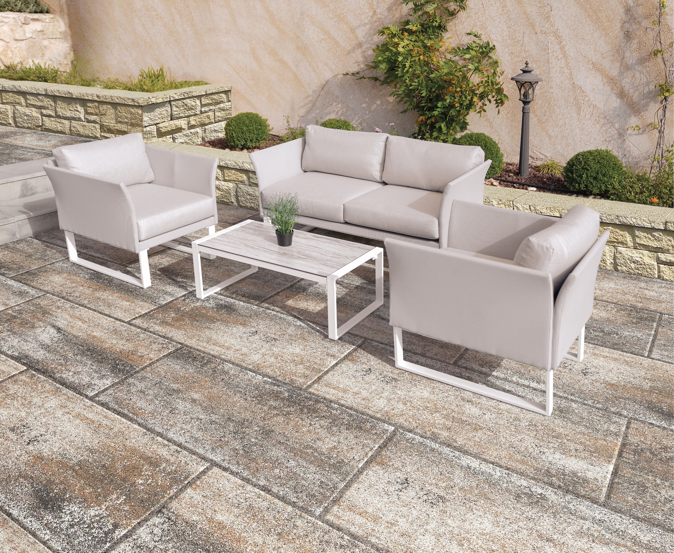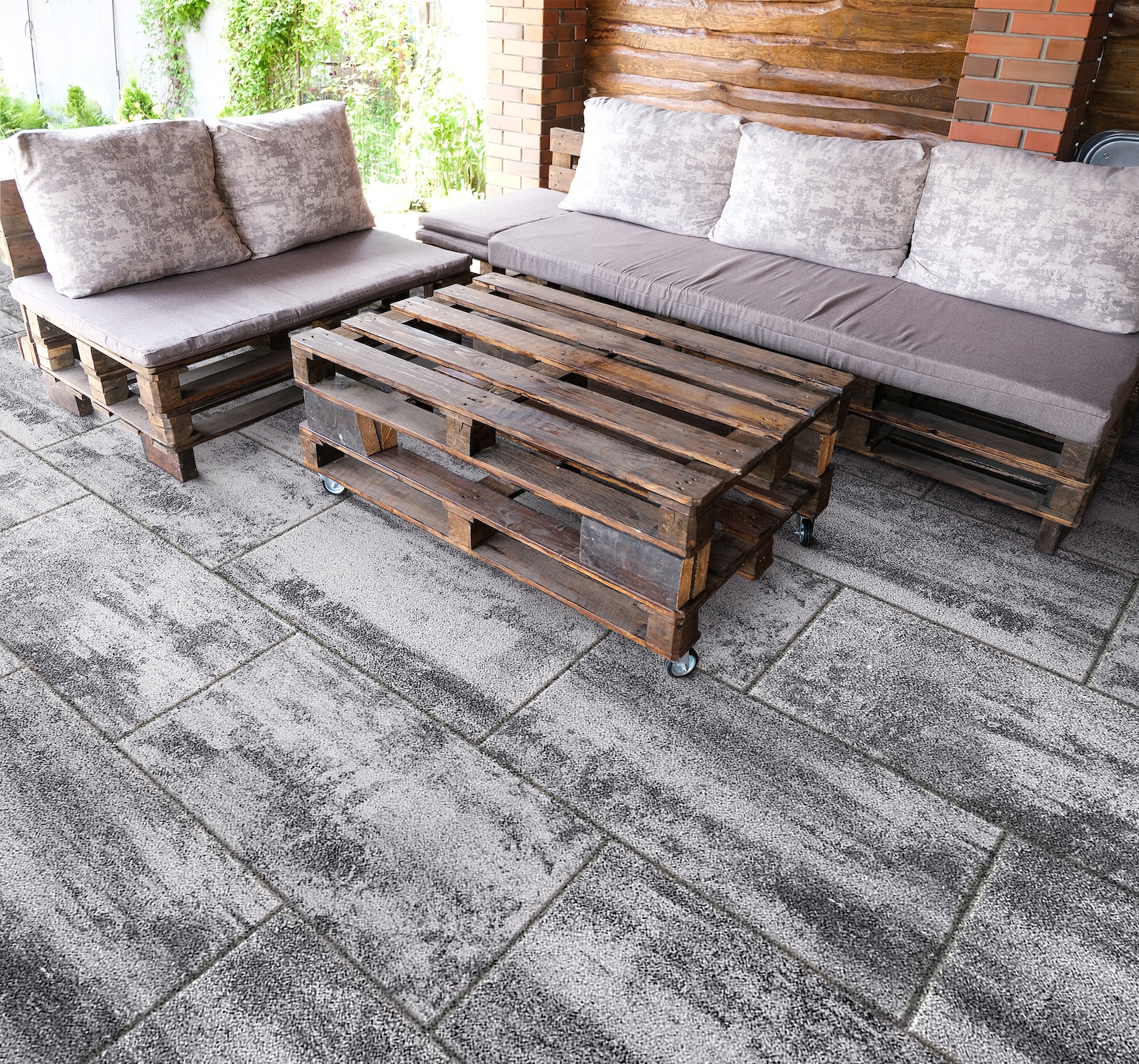 Lastra fiammata in pietra ricostruita. Il grande formato quadrato riesce, posato sia allineato che a correre, a ridefinire gli spazi perfezionandoli. Dona uno stile moderno e ricercato. Resistente ad abrasione, antigelo e scivolamento.
