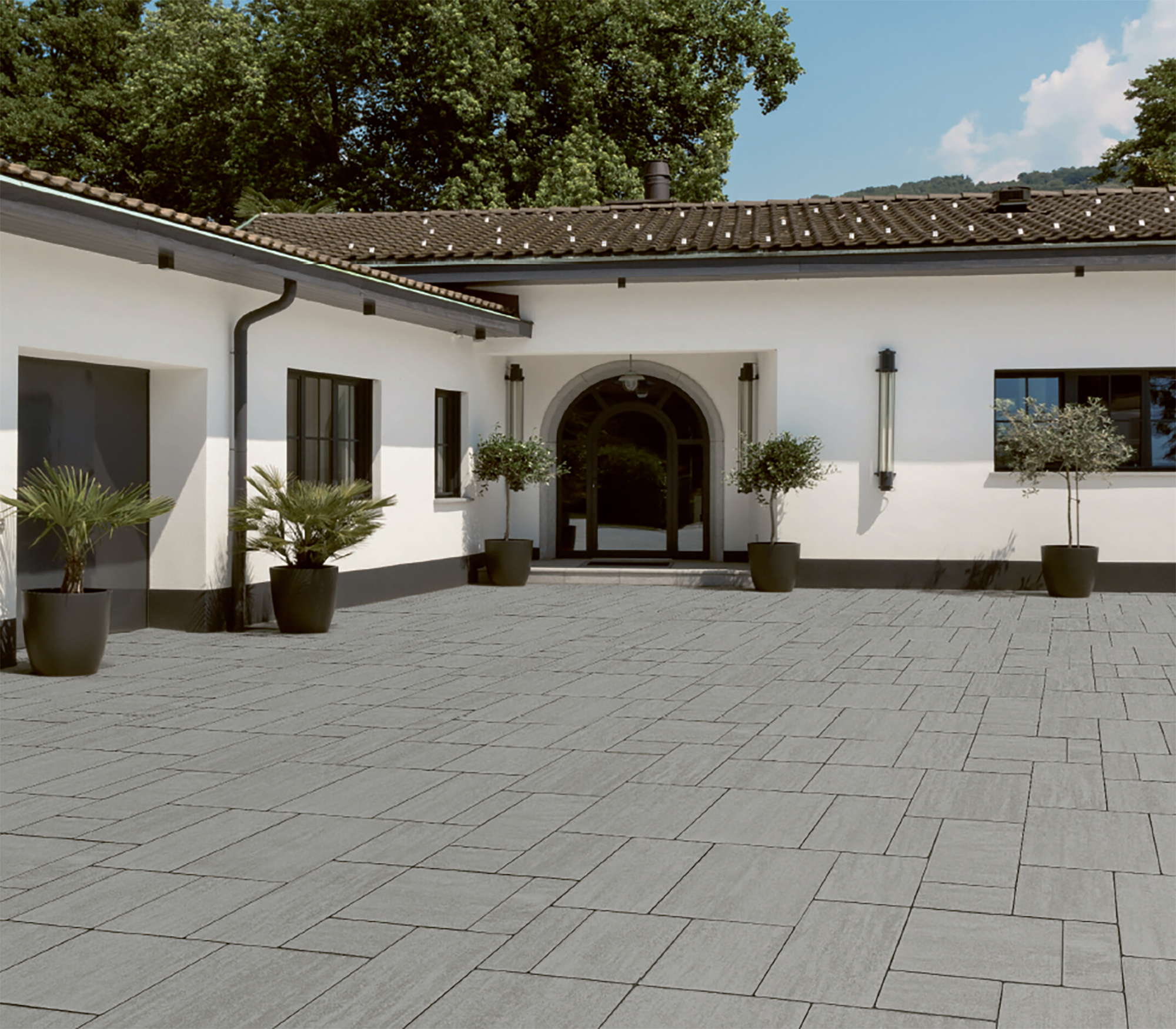 ARGENTA è un massello multiformato moderno ed elegante, composto da 4 elementi caratterizzati da superficie liscia e uniforme. Dal tipico schema di posa romanico, permette di progettare con stile ogni spazio esterno.