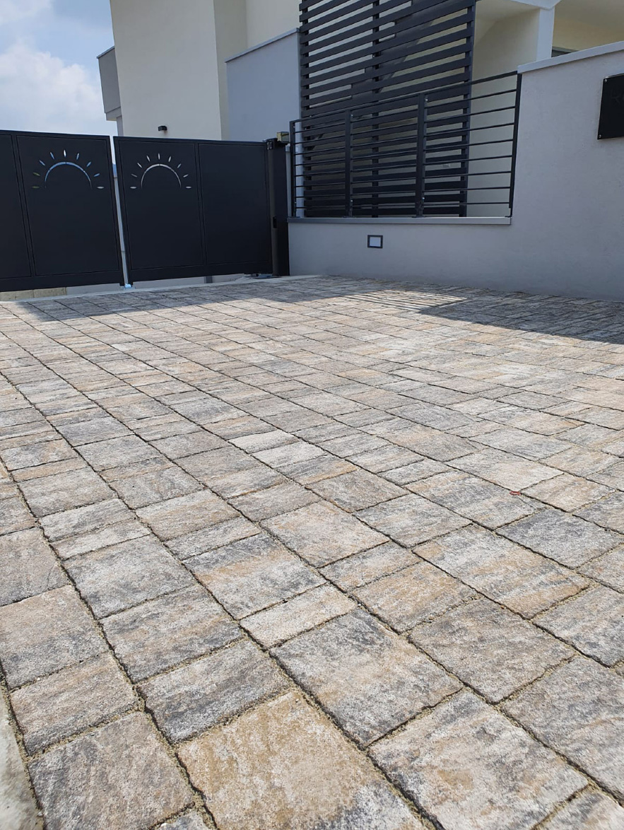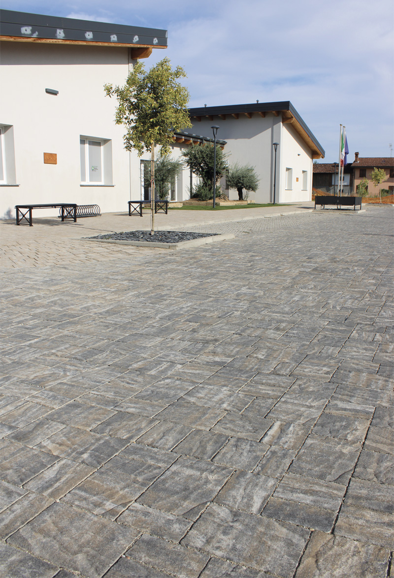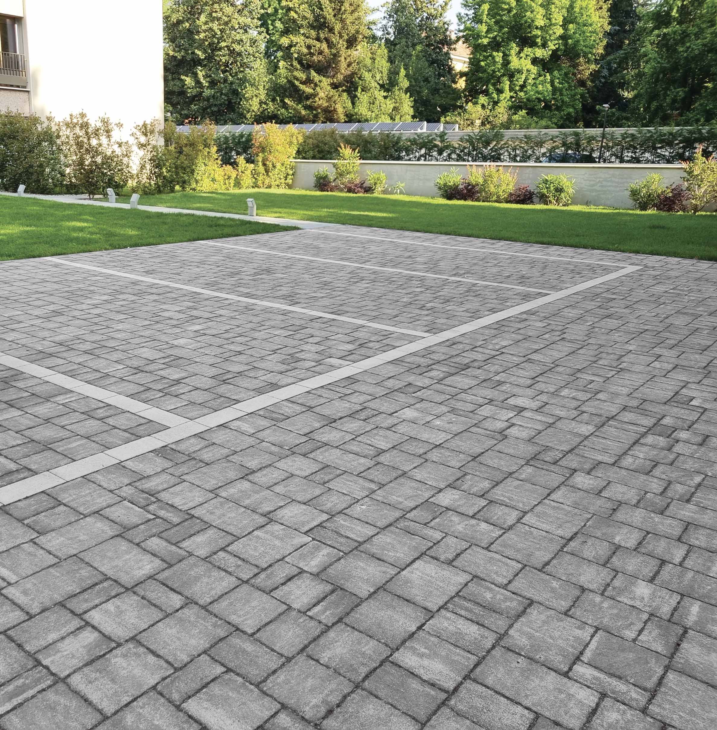 CASSIA è un massello autobloccante multiformato composto da 5 elementi caratterizzati da una superficie con tessitura irregolare, che richiama la pietra a spacco. Adatto per ogni destinazione d'uso.