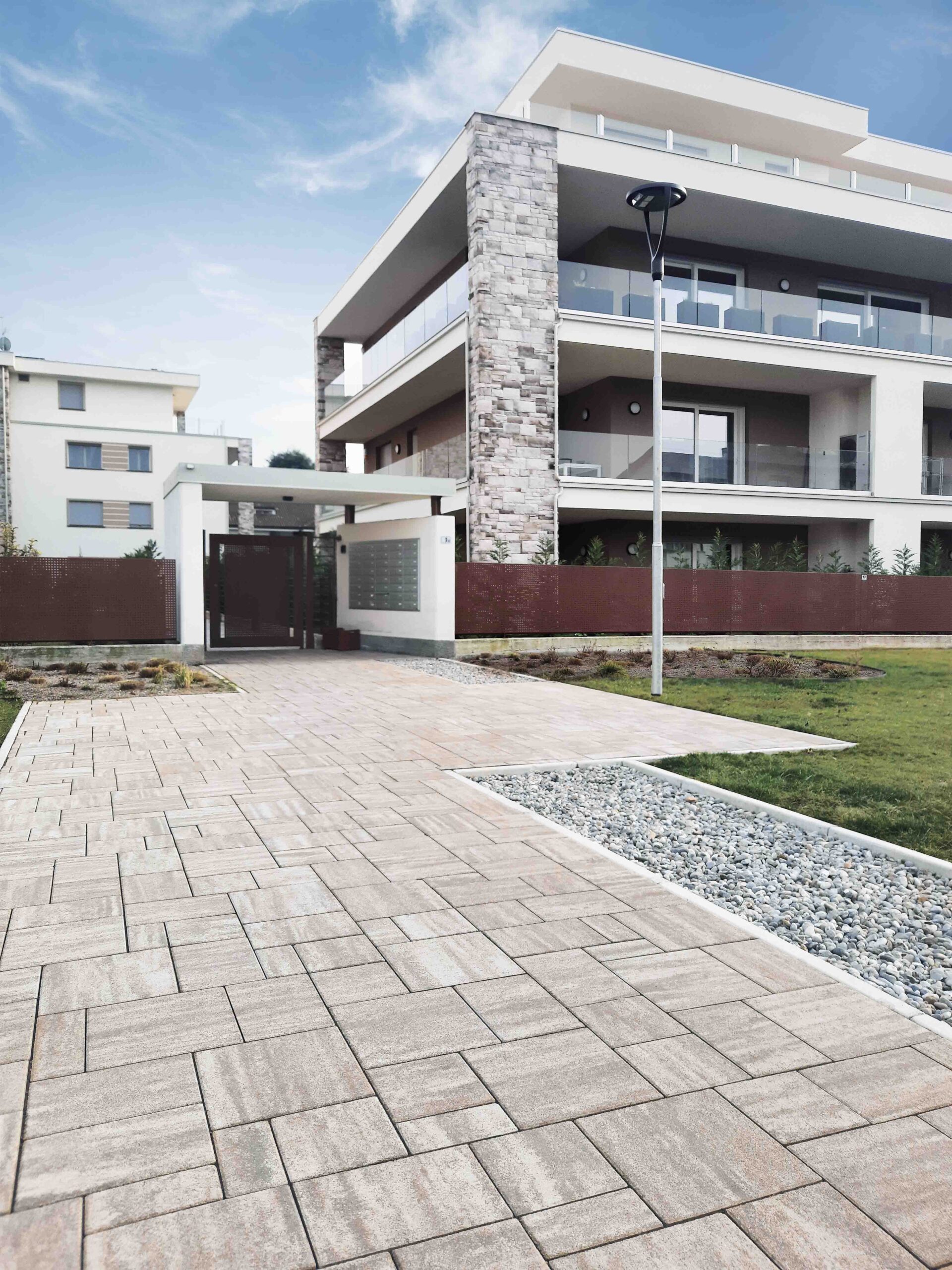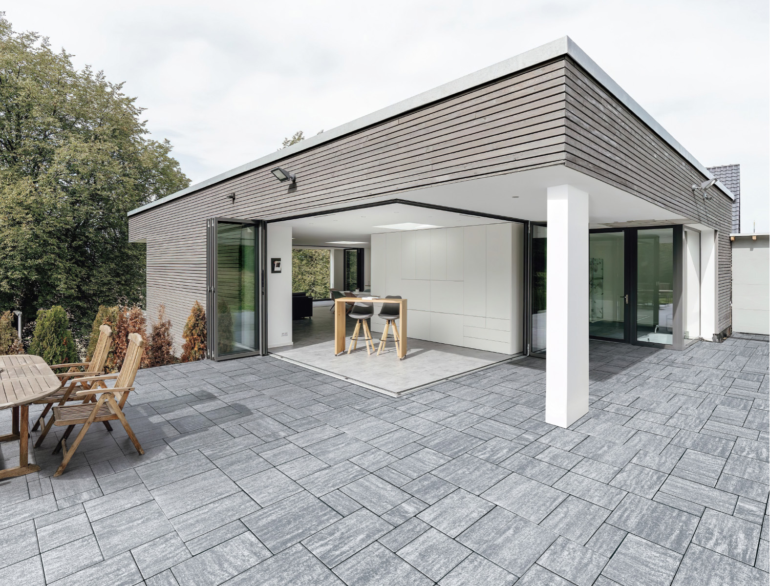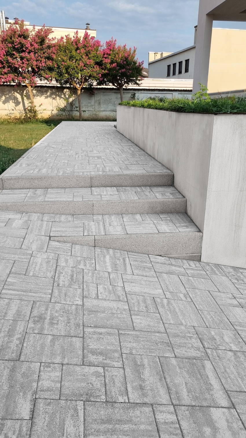 CLODIA è il massello multiformato moderno ed elegante, composto da 4 elementi caratterizzati da superficie liscia e da nuances esclusive. Dal tipico schema di posa romanico, permette di progettare con stile ogni spazio esterno.