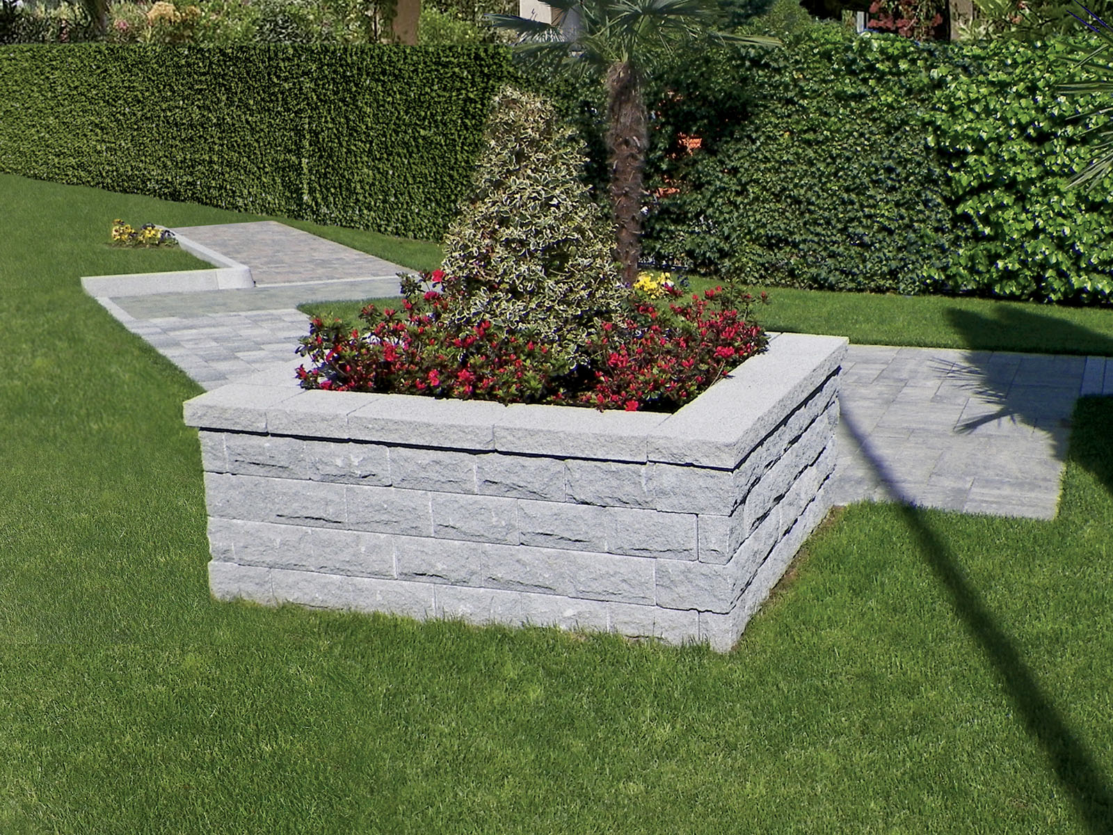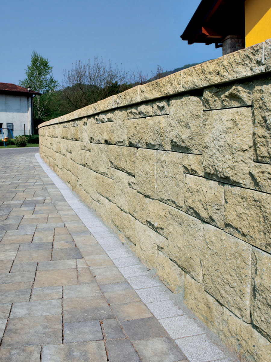 Il fascino antico della pietra viene riproposto dal sistema MURETT® con la sua particolarissima Finitura Splittata Scantonata che esalta la bugnatura del blocco. Ideale nei giardini sia pubblici che privati e nell’arredo urbano. Bello come la pietra grazie alla finitura unica, è lavorato su entrambe le facce per poter essere utilizzato sia come muro di contenimento che muro divisorio o per recinzioni.