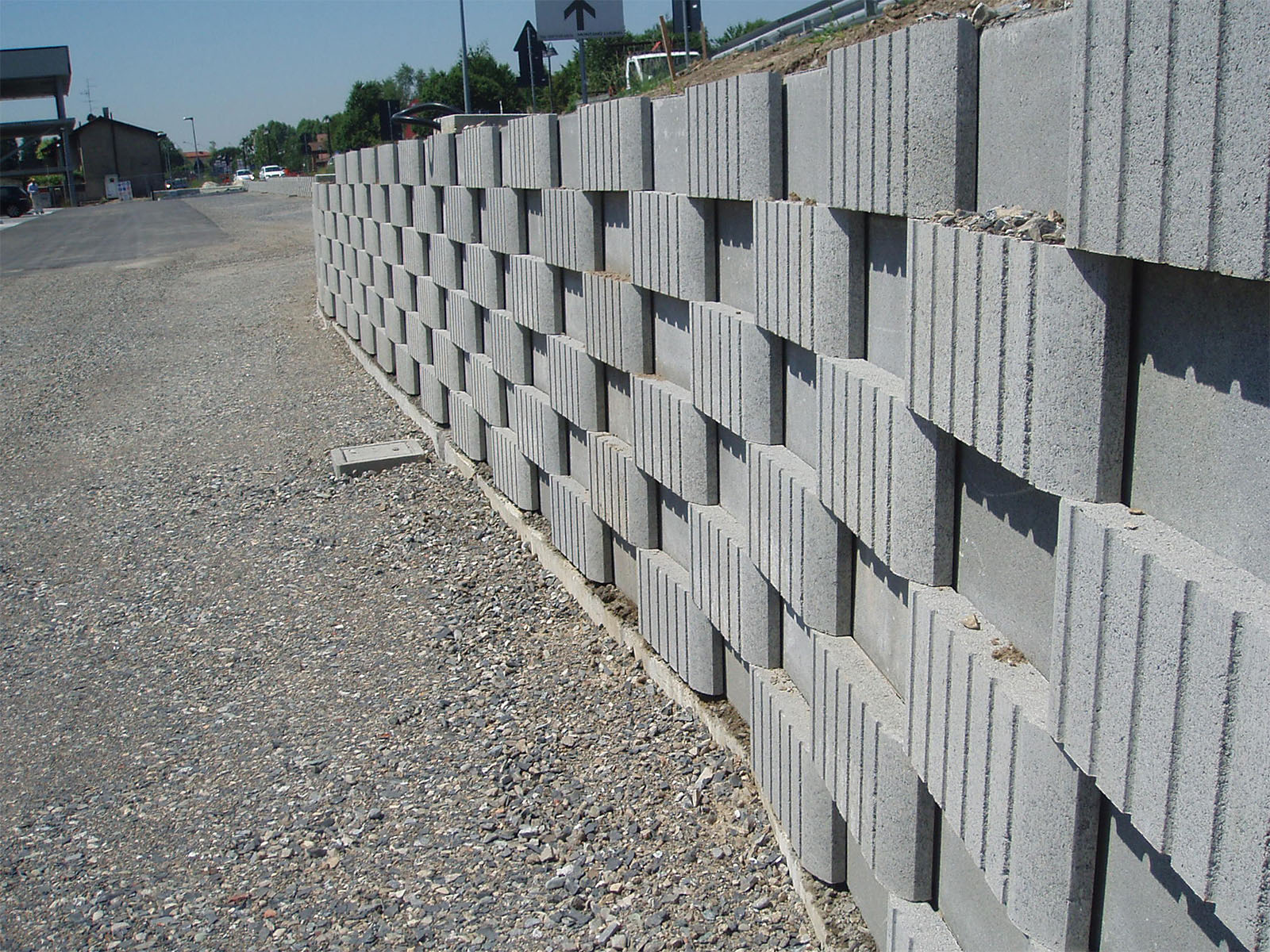 Il sito è stato inoltre schermato dalla strada a elevata percorrenza attraverso la realizzazione di un muro a secco con il nostro Greenwall®, il blocco per murature di contenimento terra e muri a secco che svolge anche un’importante funzione di assorbimento acustico.