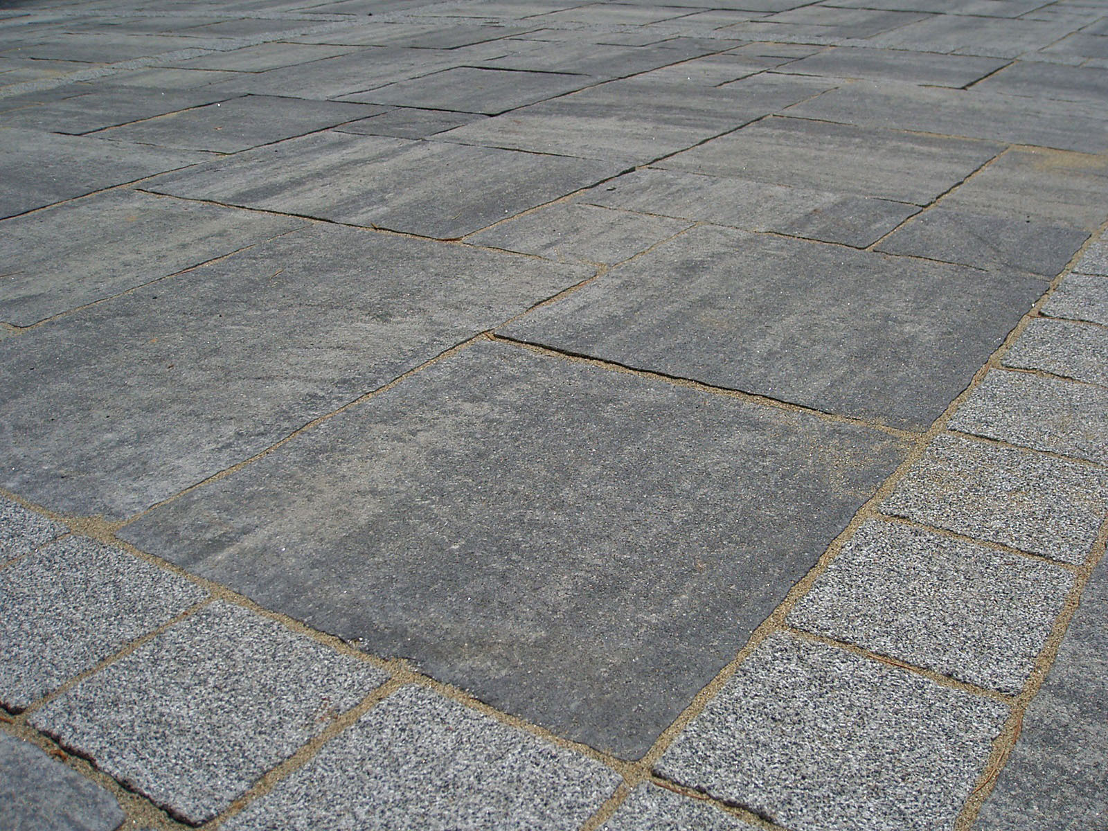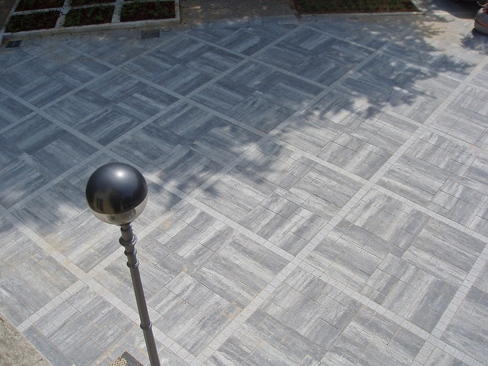 Nel caso in particolare, è stato posato a formare riquadri regolari disegnati da inserti in granito.