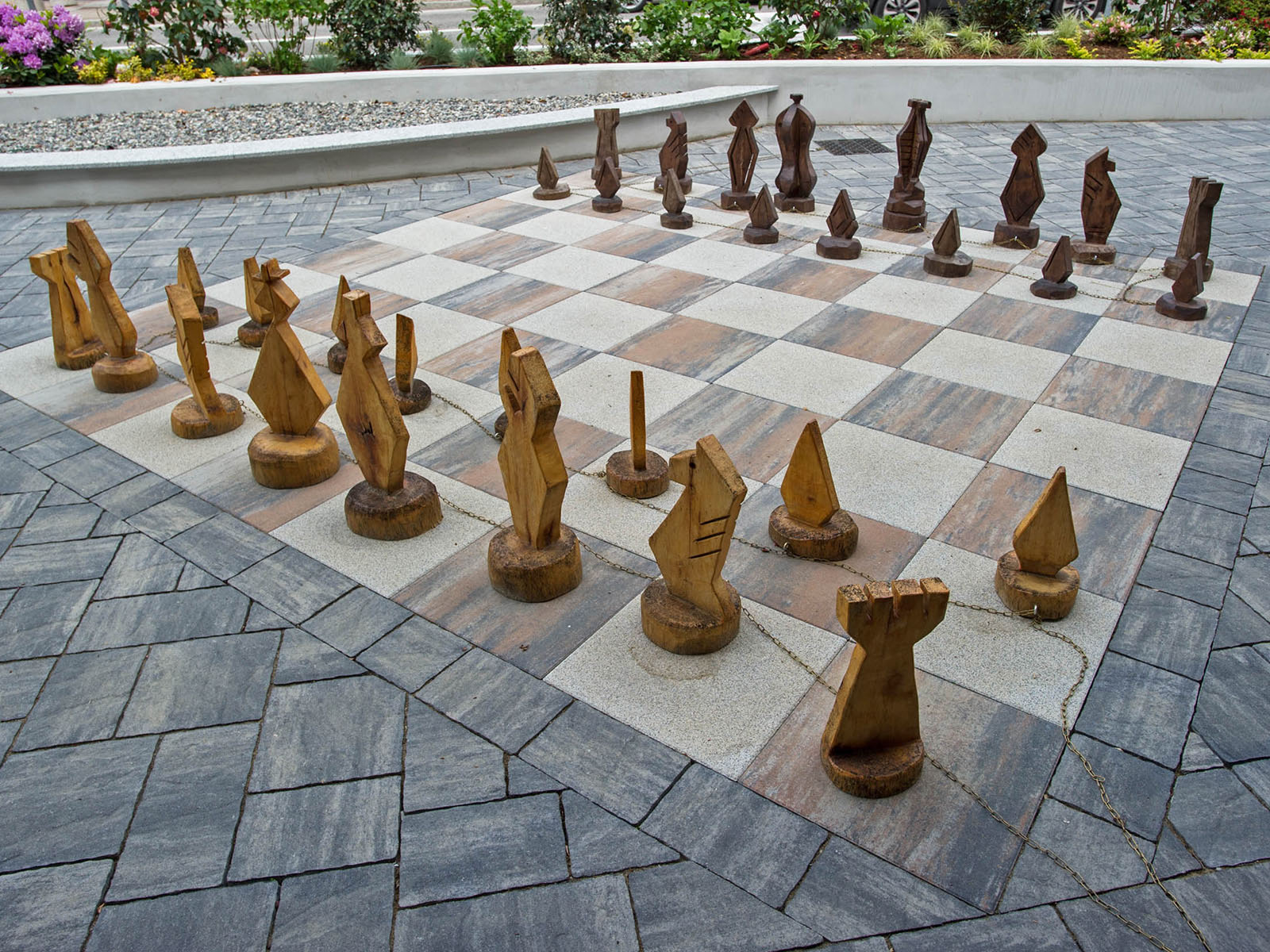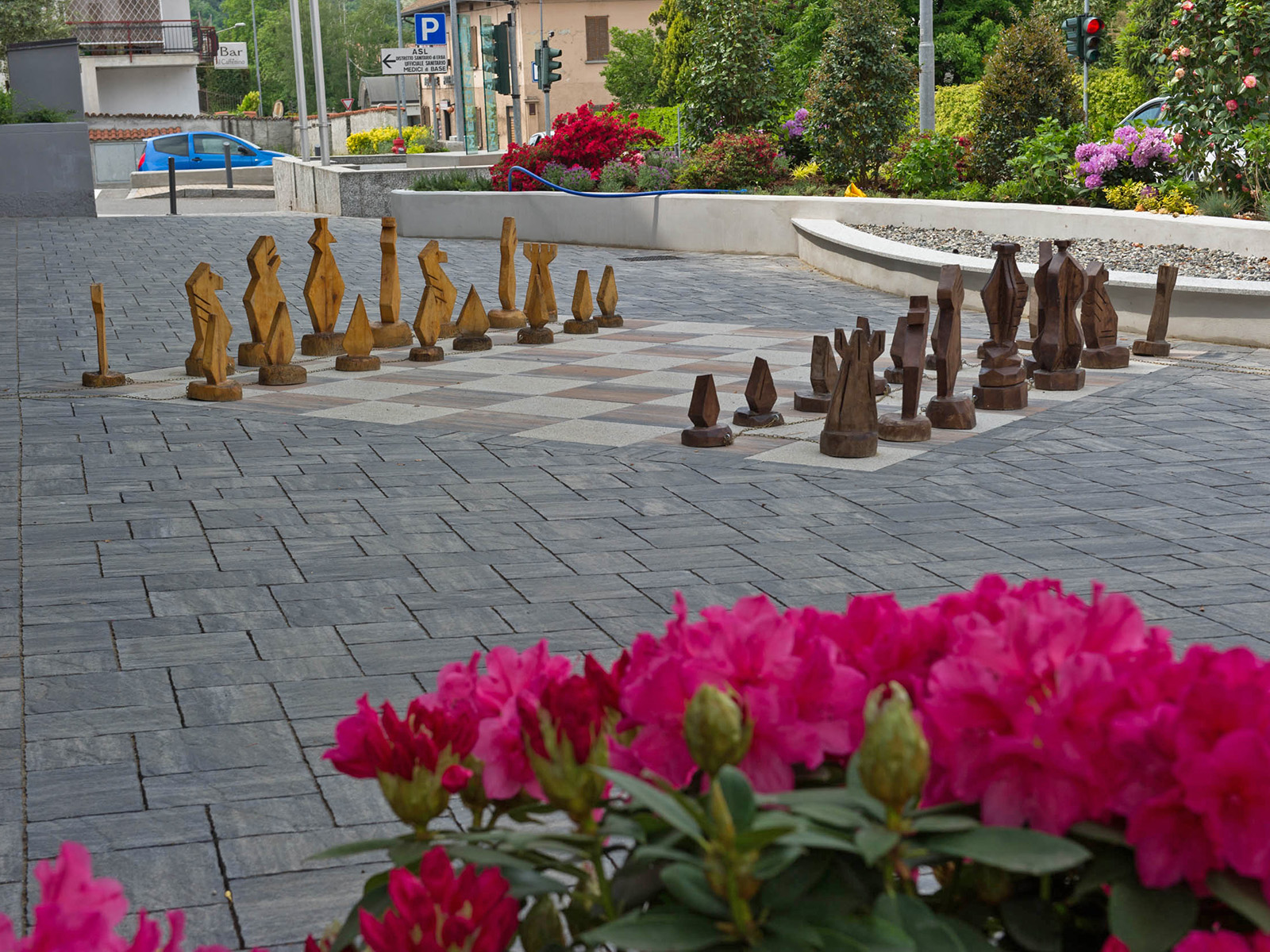 Come decoro urbano è stata inoltre realizzata una scacchiera a grandezza umana utilizzando le Piastre 50×50 MVB in diverse colorazioni.