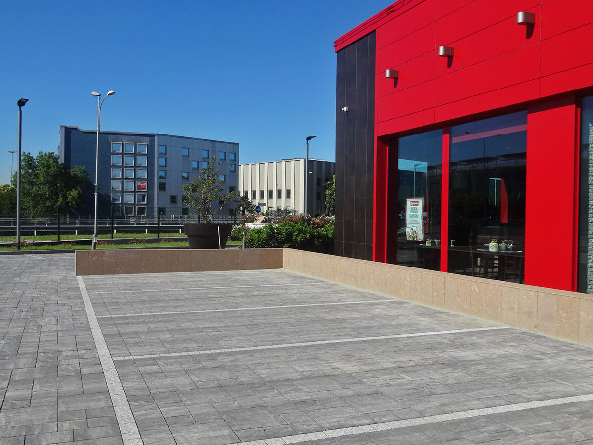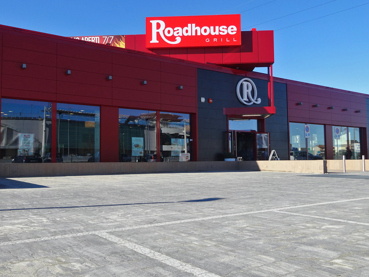 A Cinisello Balsamo, il piazzale di uno dei punti vendita della famosa catena di ristorazione Roadhouse è pavimentato con i masselli ROMA dalla colorazione Serizzo: non solo un’estetica al top ma anche prestazioni tecniche eccezionali grazie alla presenza di distanziali sfalsati – interlocking system – che garantiscono una maggiore resistenza alle sollecitazioni dovute al passaggio degli autoveicoli.